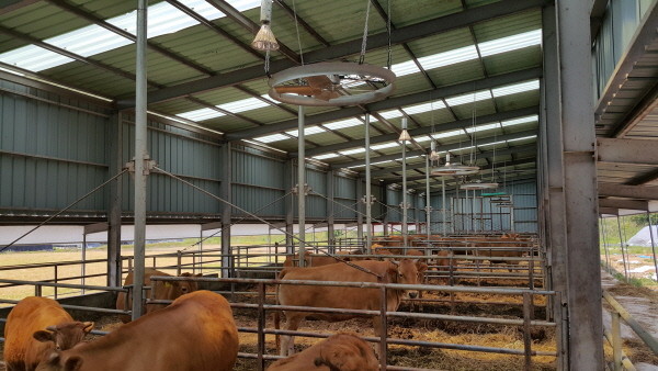 가축이 받는 더위 스트레스를 낮출 수 있는 방법은 환기팬과 송풍팬을 이용해 축사 내 공기흐름을 빠르게 해주는 것이다