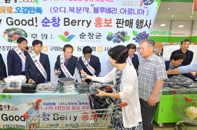 순창군이 농특산물인 베리류 판매 확대를 위해 발 벗고 나섰다. 12일 서울 양재 하나로유통센터에서 순창군 주최, 순창군조합공동사업법인 주관으로 도시민을 대상으로 베리류 판촉행사를 열었다.