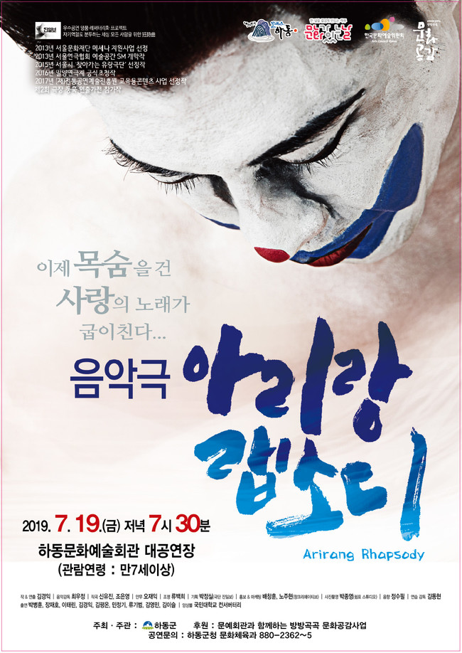 하동군은 7월 문화가 있는 날을 맞아 오는 19일 밤 7시 30분 문화예술회관 대공연장에서 음악극 ‘아리랑 랩소디’를 공연한다고 12일 밝혔다.