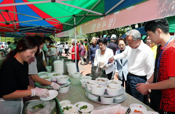 하동군은 초복을 맞아 12일 종합사회복지관에서 지역 어르신 1000여명에게 재첩 삼계탕을 대접하는 초복맞이 사랑나눔 행사를 가졌다고 밝혔다.
