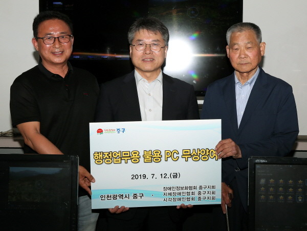구는 지난 12일 인천시 장애인정보화협회 중구지회 사무실에서 업무용 중고컴퓨터 양여식을 개최했다.