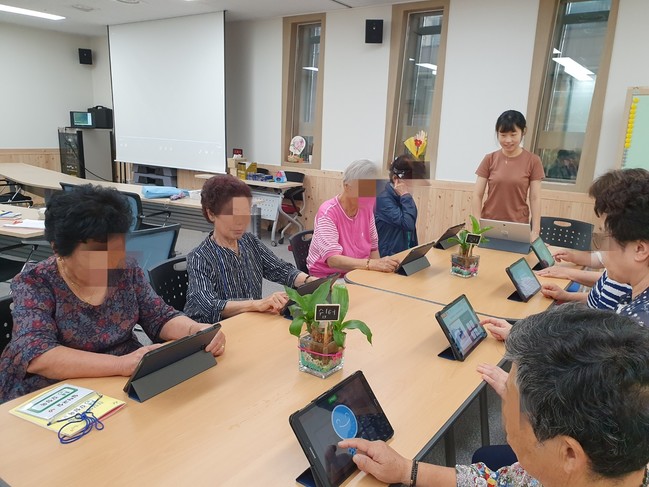 태블릿 PC를 이용한 전산화 인지장비는 각 교실 마다 주 1회 40분으로 진행되며 개별 및 그룹 훈련을 통해 서로 경쟁하거나 협력해 게임 형태의 흥미를 유발시켜 더욱 세분화된 인지학습으로 치매예방 등에 도움을 주고 있다.