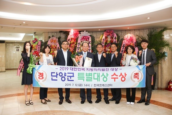 류한우 군수는 "군민의 적극적인 성원과 응원이 있었기에 가능한 수상이라 더욱 영예롭고 기쁘다."며 "꿈과 희망이 있는 살기좋은 단양 건설을 위해 더욱 노력하겠다"고 말했다.