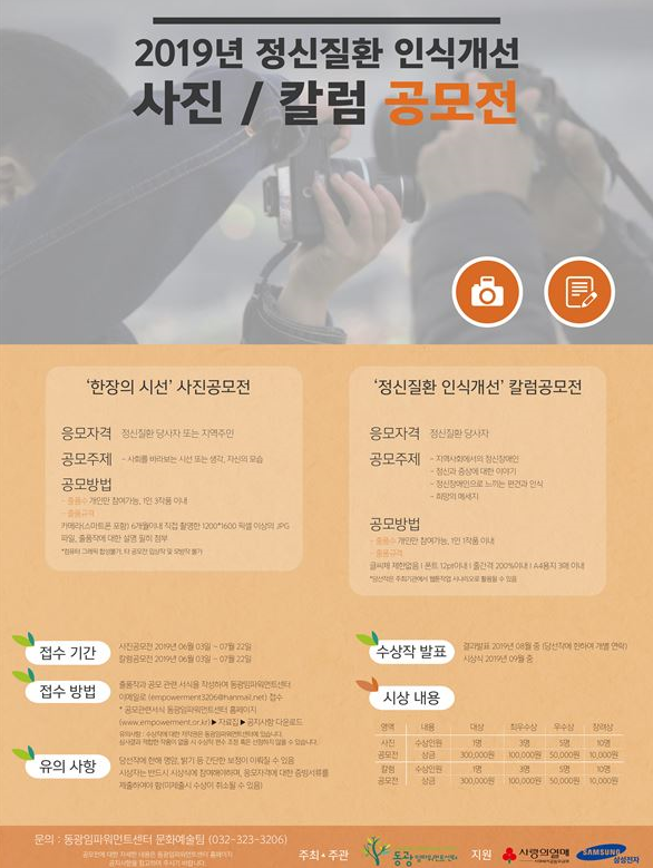 부천시와 부천시보건소가 지원하고 부천동광교회가 운영하는 정신재활시설 동광임파워먼트센터에서 정신질환 혐오사회 구조의 변화를 위해 사진·칼럼 공모전을 개최한다.