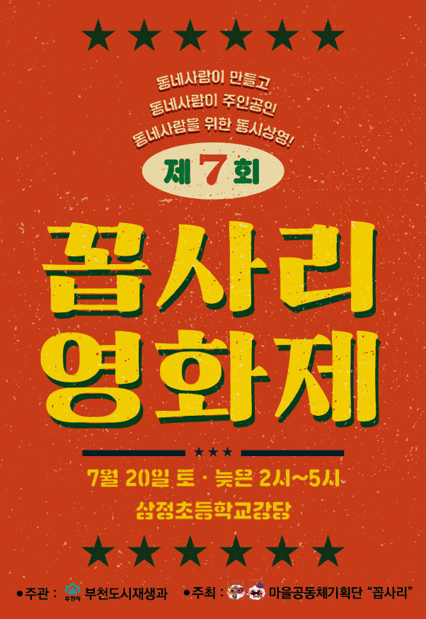 부천시 약대동 마을공동체기획단 ‘꼽사리’가 오는 20일 오후 2시 약대동 삼정초등학교 강당에서 ‘꼽사리 영화제’를 개최한다.