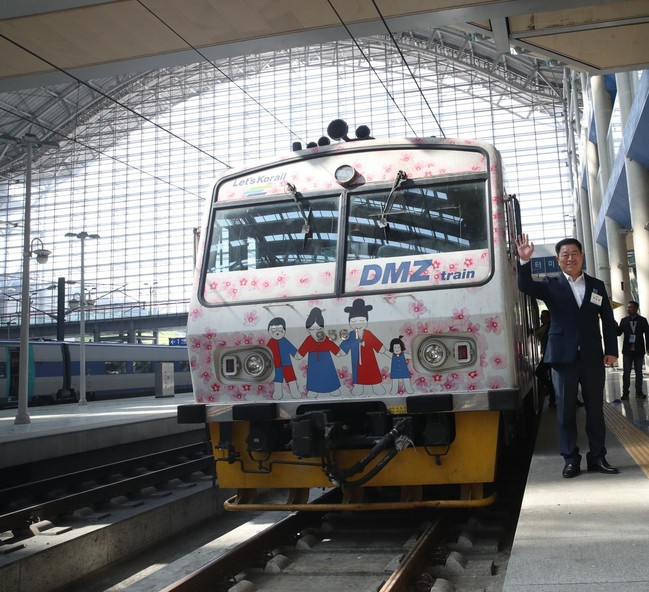 광명시가 5월14일 KTX광명역의 남북평화철도 출발역 지정을 기원하는 DMZ특별열차기행 행사를 가졌다