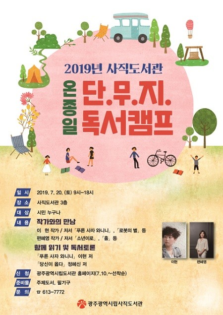 광주시립사직도서관은 오는 20일 오전 9시부터 오후 6시까지 책과 함께 하는 ‘온종일 단.무.지. 독서캠프’를 운영한다.