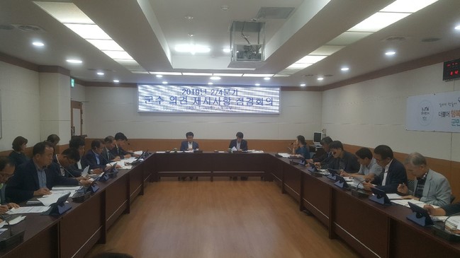 강진군은 지난 11일 군청 소회의실에서 이승옥 강진군수를 비롯한 부군수, 실과소장 20여 명이 참석한 가운데 2019년 2/4분기 군수 의견 제시사항 추진상황 점검 회의를 개최했다.