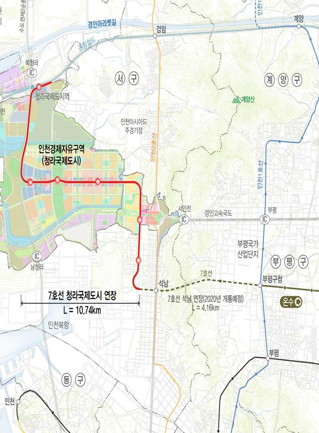 대도시권광역교통위원회는‘서울도시철도 7호선 청라국제도시 연장사업’의 기본계획을 승인하고, 오는 16일자로 관보에 고시한다고 밝혔다.