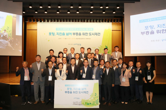 포항시는 15일 서울에 있는 대한상공회의소 국제회의장에서 정부 주도의 종합적이고 체계적인 도시재건의 필요성을 강조하고, 국민적 관심을 높이고 공감대를 확산하기 위해 ‘11.15포항지진 피해지역 도시재건을 위한 포럼’을 개최했다.