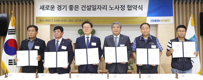 이날 협약은 경기도의회와 경기도를 비롯한 6개 기관 및 단체가 도내 건설업 전반의 위기의식을 함께하고 노사정 상생협력을 통해 좋은 건설일자리 환경을 조성하고자 마련됐다.