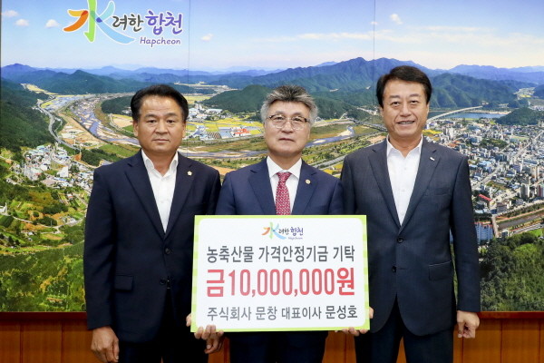 주식회사 문창 문성호 대표이사는 15일 합천군청을 방문해 농축산물 가격안정기금 1,000만원을 기탁했다.