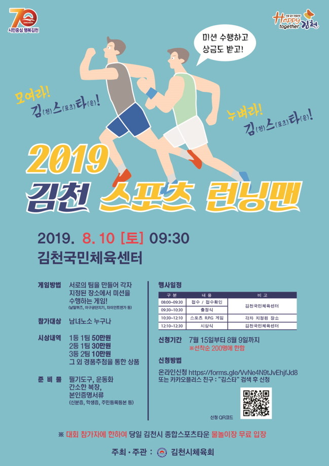 김천시는 오는 8월 10일 김천국민체육센터에서 2019 김천 스포츠 런닝맨을 개최한다.