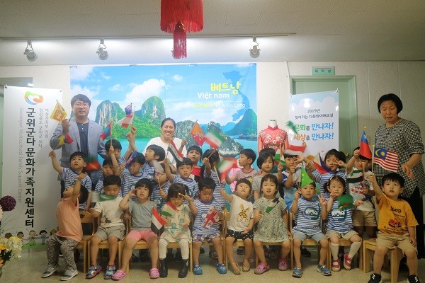군위군다문화가족지원센터는 지난 6월 21일 튼튼어린이집 원아 15명, 6월 28일 중앙어린이집 원아 27명, 7월 9일 군위읍 서부1리 마을 주민 30여명, 7월12일 군위중학교 1학년 63명을 대상으로‘다문화 인식개선’프로그램으로 ‘문화를 만나자 세상을 만나자’를 진행했다.