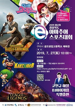 경상북도·구미시가 주최하고 경북문화콘텐츠진흥원이 주관하는 2019 경상북도 아마추어e스포츠대회가 오는 7월 27일, 금오공업고등학교 체육관에서 개최된다.