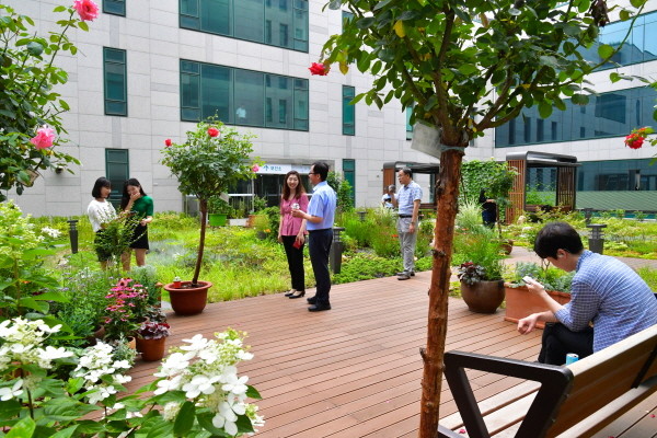 중랑구가 청사 녹색정원 조성을 통해 관공서의 삭막한 이미지를 탈피하고 주민들에게 친근하게 다가가기 위한 변화를 시도하고 있다.