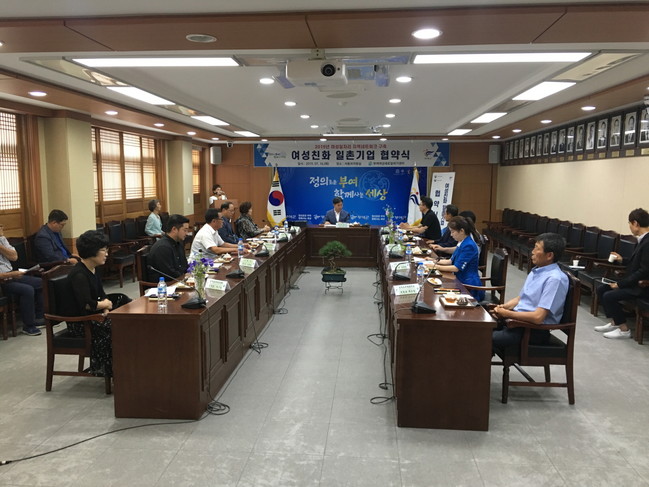 부여군은 16일 부여군청 서동브리핑실에서 여성인력 채용에 앞장서 온 부여지역 10개 기업들과 함께 여성 근로자가 일하기 좋은 일터를 만들어 나가기 위한 여성친화 일촌기업 협약식을 가졌다.