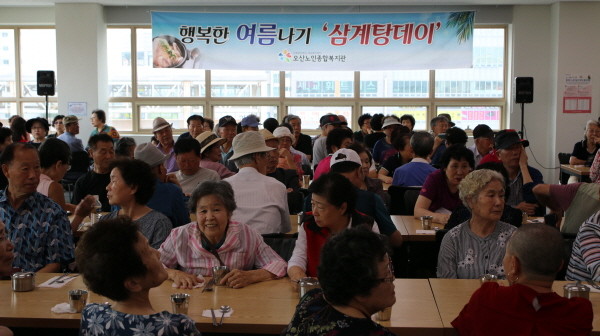 오산노인종합복지관은 우리나라 전통의 여름나기 풍습으로 복달임 음식을 먹어야 여름을 건강하게 보낸다는 전통을 살려 지역 노인들이 건강히 여름을 나길 기원하는 마음으로 삼성웰스토리, 잔다리 마을공동체 후원으로 행사를 마련하고 있다고 밝혔다.