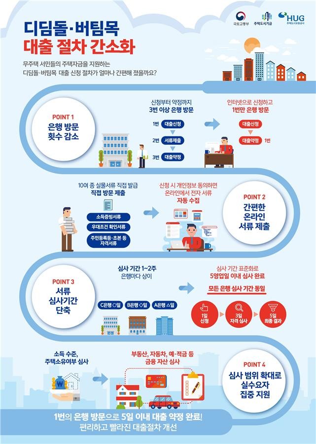 무주택 서민들의 주택자금을 지원하는 주택도시기금 디딤돌·버팀목 대출이 편리해진다.