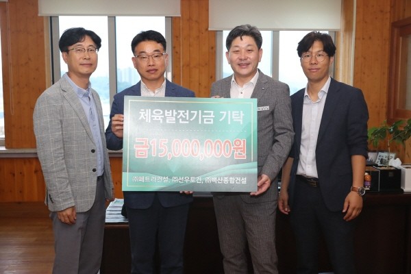 ㈜페트라건설, ㈜선우토건, ㈜백산종합건설, 고성군 체육발전기금 1500만원 기탁