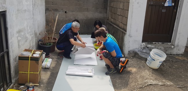 모녀 4식구가 거주 중인 빌라는 결로 등으로 집안 곳곳에 곰팡이가 뒤덮여 있어 많은 보수가 필요한 상황이었으며, 봉사자들은 살림을 모두 끌어내고 도배 작업을 진행했다.