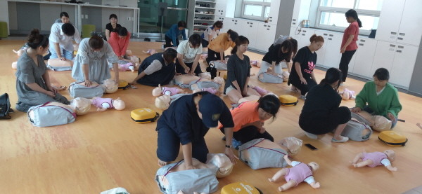 이날 교육에는 어린아이를 키우는 부모를 비롯해 손자녀를 돌보는 어르신 등 20여명이 참석해 영아와 유아, 소아 구분기준과 보육 중에 발생하는 화상 및 기도폐쇄 등의 응급상황에 대처하는 방법을 배웠다.
