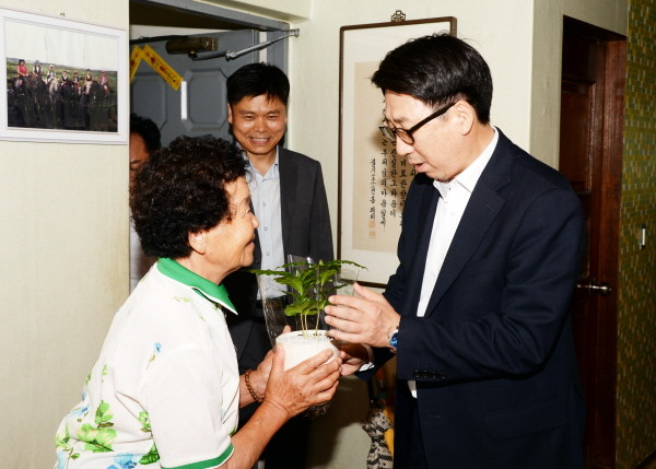 최종환 파주시장, 독거노인에게 반려식물 전달
