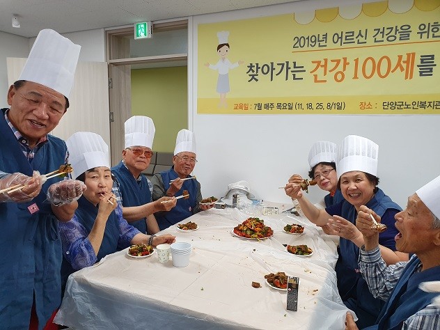 교육은 단양노인복지관 40여명의 어르신을 대상으로 7월 11일을 시작으로 4주간 진행되며, 암예방 및 식품위생, 간질환예방 및 위생, 고혈압예방 및 식습관, 당뇨병예방 및 위생을 주제로 도토리묵채소무침, 양파참치샌드위치, 닭가슴살오색무침 등 조리실습과 함께 진행한다.