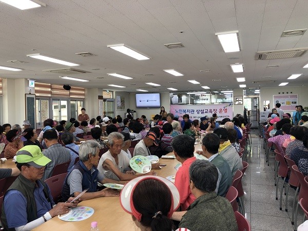군에 따르면 군보건소는 노인복지관의 주1회 무료급식으로 인한 많은 어르신들이 급식시간 11시 30분 이전부터 대기하고 있어 급식대기시간을 활용한 상설교육장을 운영중이다.