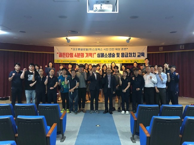 파주시공공체육시설 수탁사 코오롱스포렉스는 지난 11일 파주소방서 후원으로 김용선 강사가 파주시민 및 스포츠센터 직원 60여명이 참석한 가운데 심폐소생술 및 응급처치교육을 실시했다.