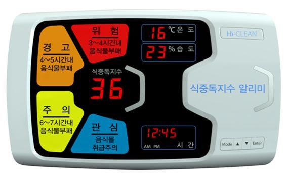 식중독지수 알리미 전광판은 조리장 내의 온도와 습도를 측정해 실시간 식중독 지수를 표시하고, 관심, 주의, 경고, 위험 등 식중독 위험을 4단계로 나타낸다.