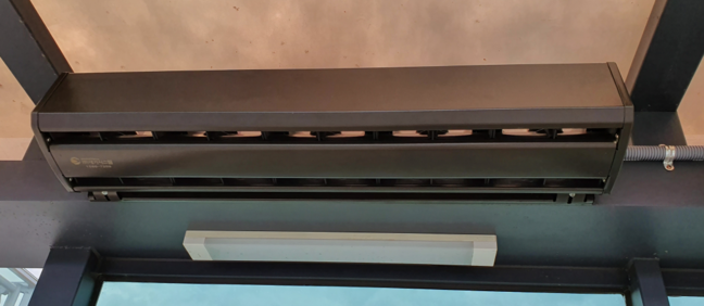 에어송풍기는 자연바람으로 공기를 순환시켜 체감온도를 낮추는 효과를 주며 이용시민이 1회 작동버튼을 누르면 5분간 작동하도록 설치해 개방형인 버스정류장에 운영이 가능하다.