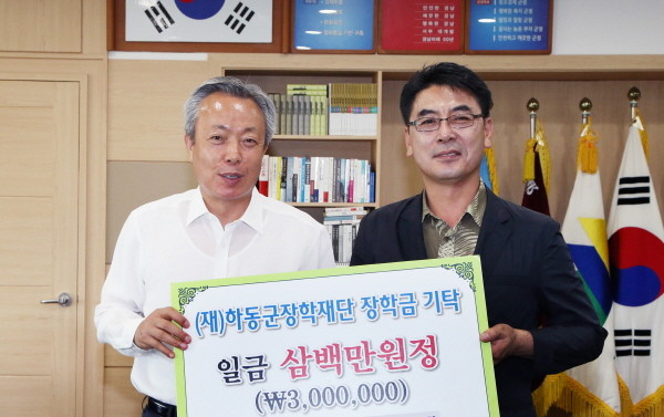 장학기금을 대신 전달한 김종균 하동신문 대표는 “적지만 지역 청소년들의 학업정진을 위한 시금석이 되길 바란다”고 소감을 전했다.
