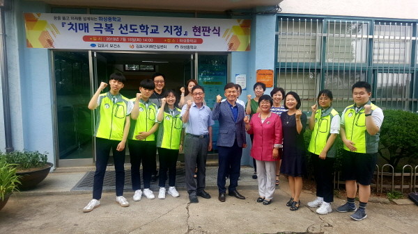 김포시보건소는 지난 16일 하성중학교를 김포시 제3호 치매극복 선도학교로 지정하고 현판식을 가졌다.