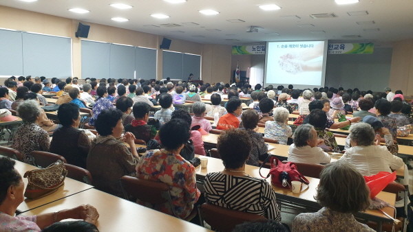 이날 교육은 노인일자리 직무능력 향상과 위생, 건강관리에 초점을 맞춰 개인위생, 식중독 예방, 손씻기, 나트륨 줄이기, 식품 허위·과대광고 예방교육, 친절서비스 등으로 진행됐다.