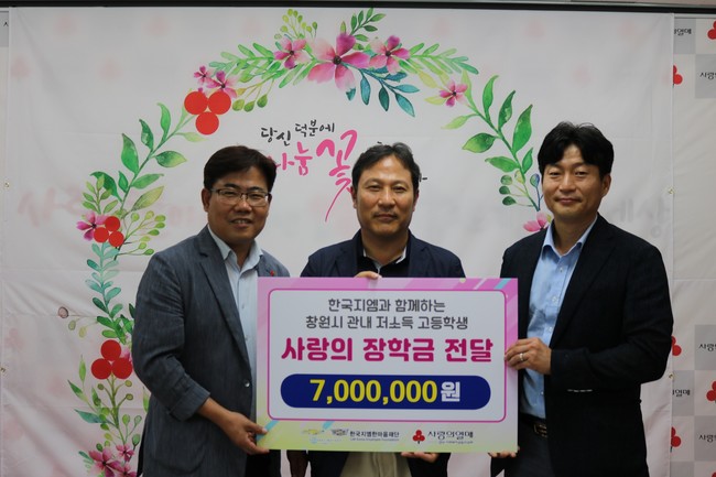 창원시는 17일 한국지엠 한마음재단에서 창원시 저소득가정 청소년을 위해 장학금 700만 원을 기탁했다고 밝혔다.