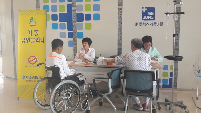 인천 계양구 보건소는 지난 10일부터 인천에서 처음으로 병원 진료와 연계한 이동금연클릭닉을 메디플렉스 세종병원에서 시범 운영하고 있다.