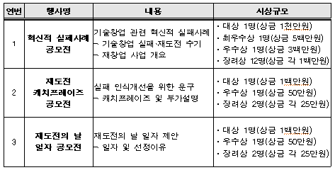 이러한 국내외 사례처럼 누구나 실패의 경험을 공유하고, 실패와재도전의 가치를 확산하기 위한 공모전이 열린다.