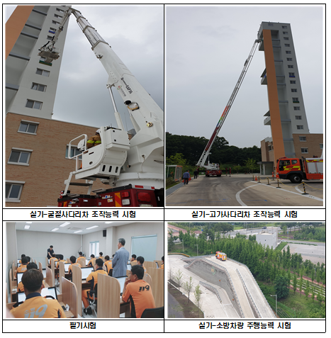 실기는 소방차량 주행능력, 고가사다리차 조작능력, 굴절사다리차 조작능력, 수동조작 및 비상 대응능력 등 4개 분야의 조작능력을 실제차량으로 평가했다.