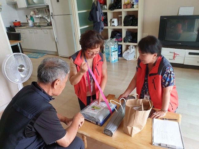 이날 위원들과 동 직원 3명은 어르신을 직접 찾아가 여름용품을 전달하고 안부를 확인하며 불편한 점이 없는지 생활여건을 보살폈다.