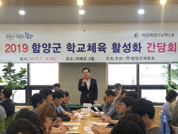 함양군이 학교체육의 활성화와 체계적인 프로그램 구성을 통한 건강하고 바른 인성함양을 위한 간담회를 열었다.