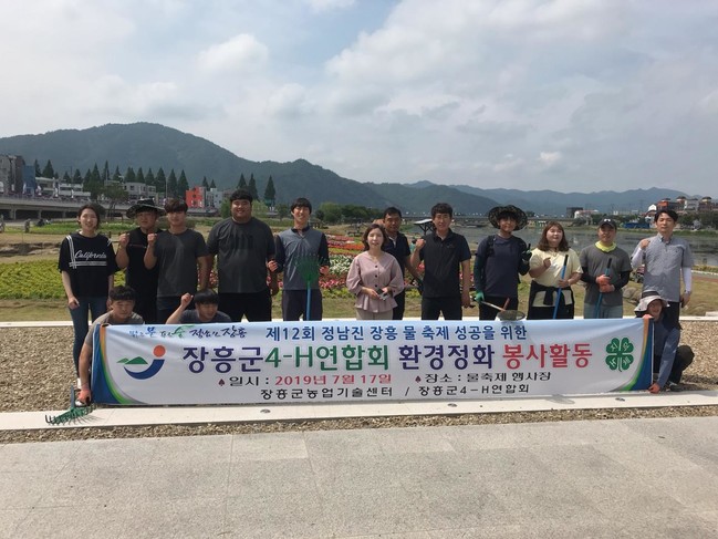 장흥군4-H연합회는 오는 26일 막을 올리는 제12회 정남진 장흥 물축제 성공적인 개최를 위해 17일 탐진강변 꽃동산 일대에서 환경정화활동을 실시했다.