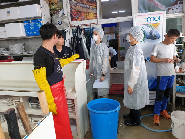 점검내용은 종업원들의 개인위생상태, 음식물 등의 위생취급상태, 무허가·무신고 제품 사용 여부 등으로, 업소의 위생상태에 대한 전반적인 점검을 실시하였으며, 특히 활어를 취급하는 업소들의 수족관 물관리 상태를 확인하기 위해 수족관물의 적정온도 유지 여부를 확인하고 수족관 물을 수거해 식중독 유발 세균이 있는지에 대한 검사를 병행했다.