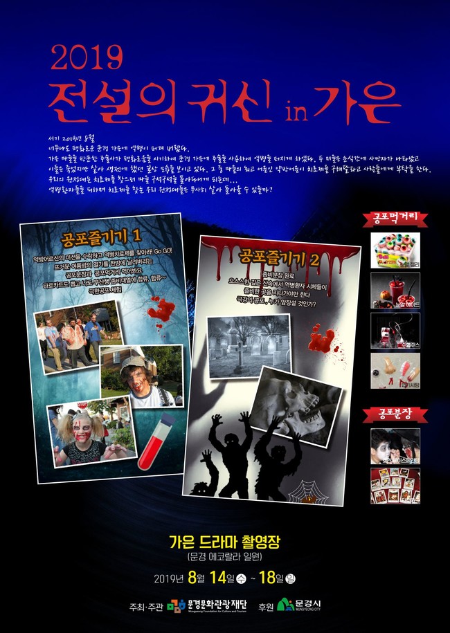 ‘2019 문경 Ghost Park체험’‘전설의 귀신 in 가은’행사가 오는 8월 14일부터 8월 18일까지 문경 에코랄라 가은 오픈세트장 일원에서 개최된다.