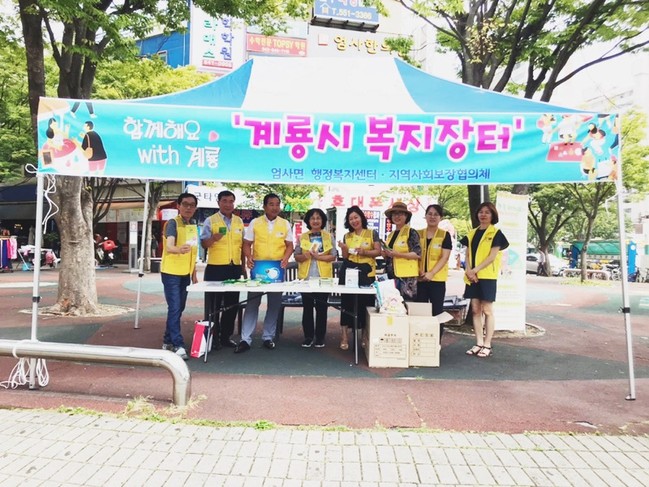 계룡시 엄사면행정복지센터는 엄사면지역사회보장협의체와 함께 지난 16일 복지사각지대 해소를 위해 엄사사거리 원형광장에서 복지장터 행사를 개최했다.
