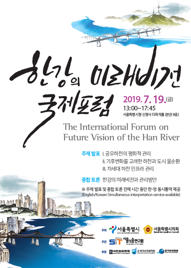 서울시의회 도시안전건설위원회는 19일 오후 1시 서울시청 신청사 다목적홀에서 서울시 및 서울기술연구원과 공동으로 ‘한강의 미래비전 국제포럼’를 주최한다고 밝히고, 최근 남북 평화와 협력 기류에 발맞추어 한강의 소중한 가치 재평가와 함께 한강의 이용과 관리의 새로운 미래비전 마련이 필요하다고 피력했다.