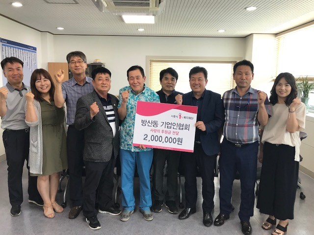 시흥시 방산동기업인협회가 지난 16일 신현동지역사회보장협의체에 200만 원을 기부했다. 방산동기업인협회는 시흥시 방산동에 사업장을 둔 기업인들의 모임으로 매년 신현동을 위한 나눔 기금으로 수백만 원을 기탁해오고 있다.