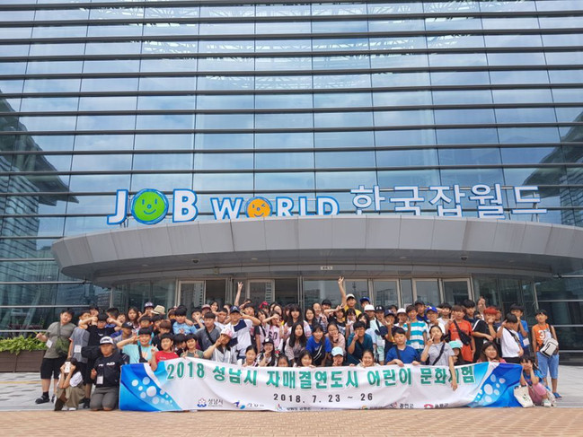 지난해 7월 성남시 자매결연도시 어린이 초청 문화 체험 행사 때 정자동 한국잡월드 앞에서 기념사진
