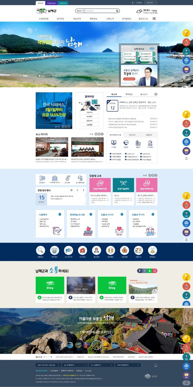 새롭게 변경된 남해군 홈페이지 메인화면