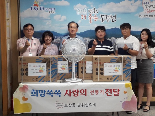 보산동 방위협의회는 지난 16일 보산동 행정복지센터를 방문해 관내 취약계층을 위한 선풍기를 후원했다.
